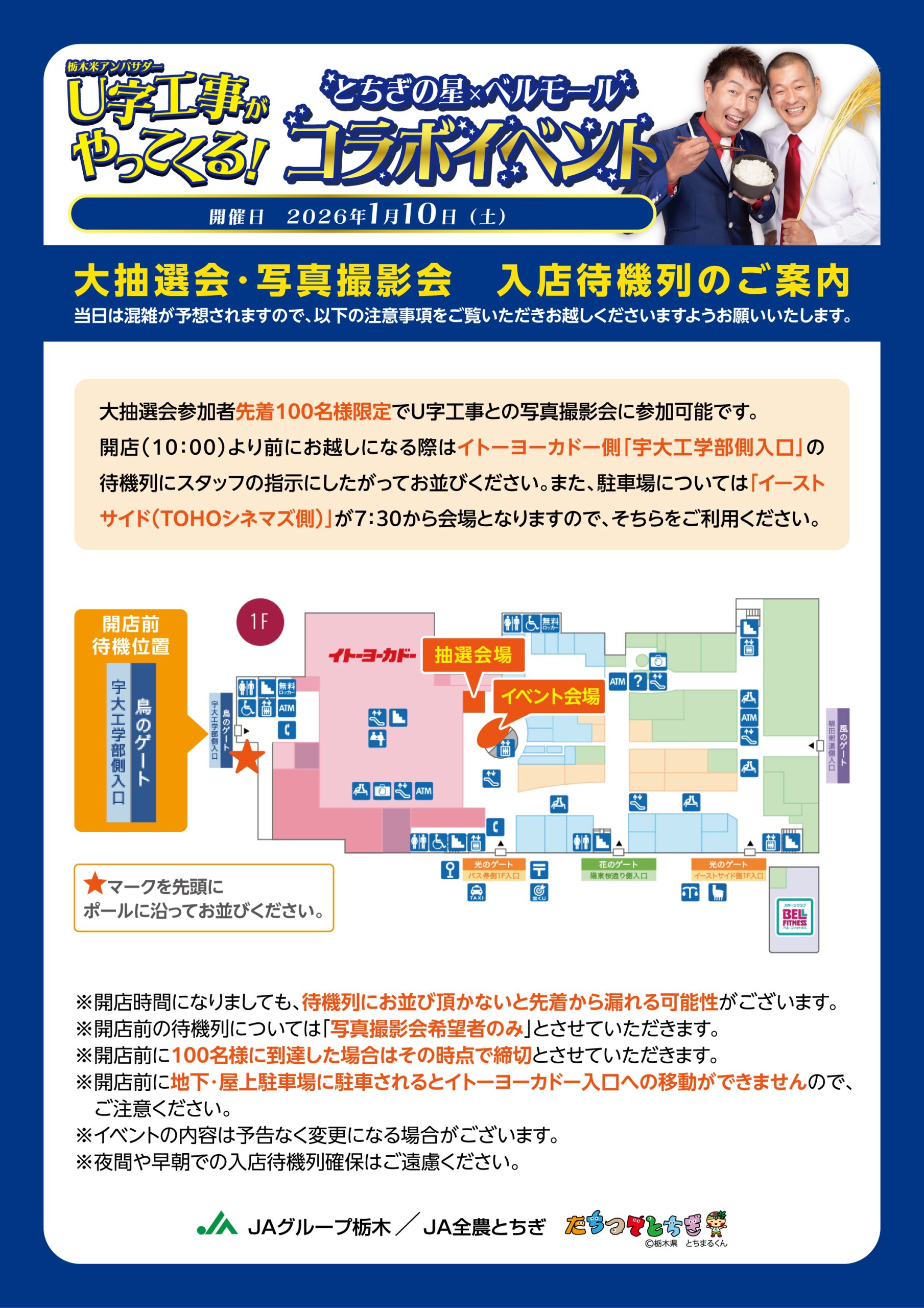 更にはとちぎの星購入者限定で抽選会、先着100名様にはU字工事と写真撮影会と盛りだくさんのイベントです。